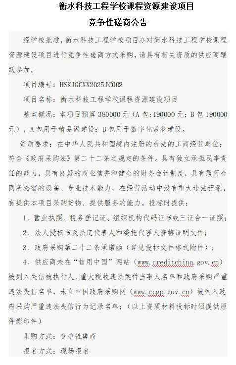 衡水科技工程学校课程资源建设项目 竞争性磋商公告